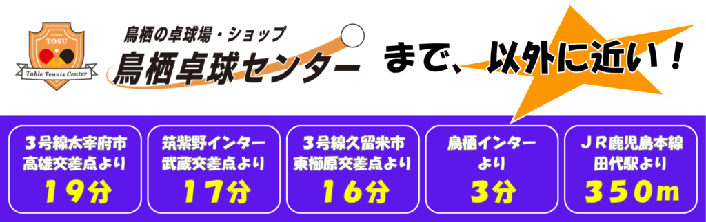 鳥栖卓球センターは、車でも電車でも利便性のとても良い場所です。