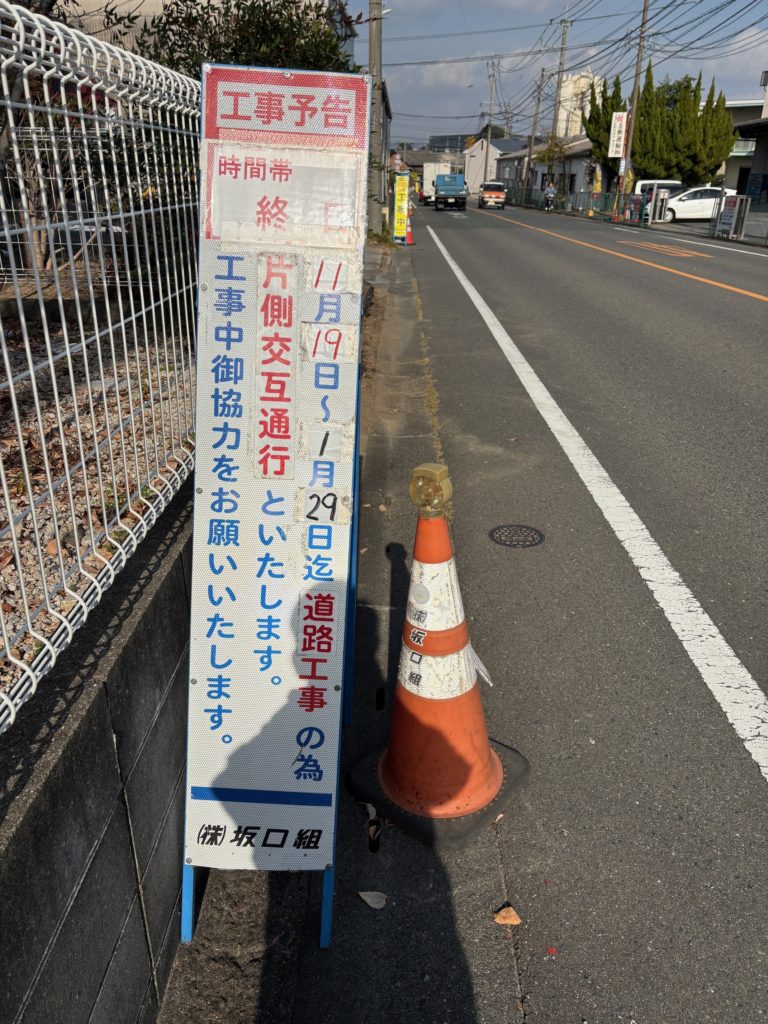 先日より鳥栖卓球センター近くの交差点付近を工事しており片側通行になっています。